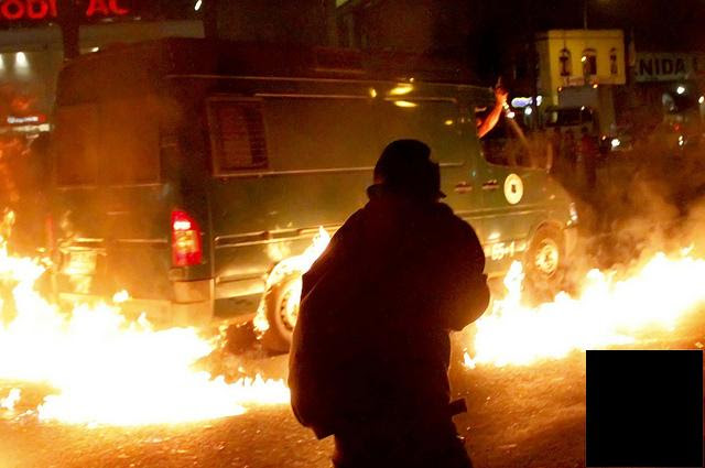 Nota por LT:Las siguentes fotos corresponden a los enfrentamientos del viernes 6 de Enero fuera de Usach, donde hubo gran cantidad de fuego e incluso fueron incendiada las oficinas gubernamentales del Servicio de Impuestos Internos. Se agradece el aporte visual enviado del ataque directo contra los bastardos de Gendarmería y el texto que las presenta.